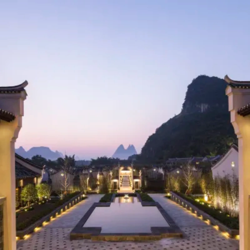 差旅特色对于频繁出差的商务人士而言,阳朔悦榕庄提供了一处远离喧嚣、回归宁静的理想落脚点。酒店整体设计质朴而优雅,借鉴桂北传统民居的小青瓦、坡屋面、白粉墙与木格窗等元素,将地域文化巧妙融入现代度假空间。百余间客房及别墅不仅舒适宜人,更通过黒木、竹子与大理石镶嵌工艺营造出中式典雅氛围,让差旅不再是奔波,而是一场身心疗愈的文化之旅。