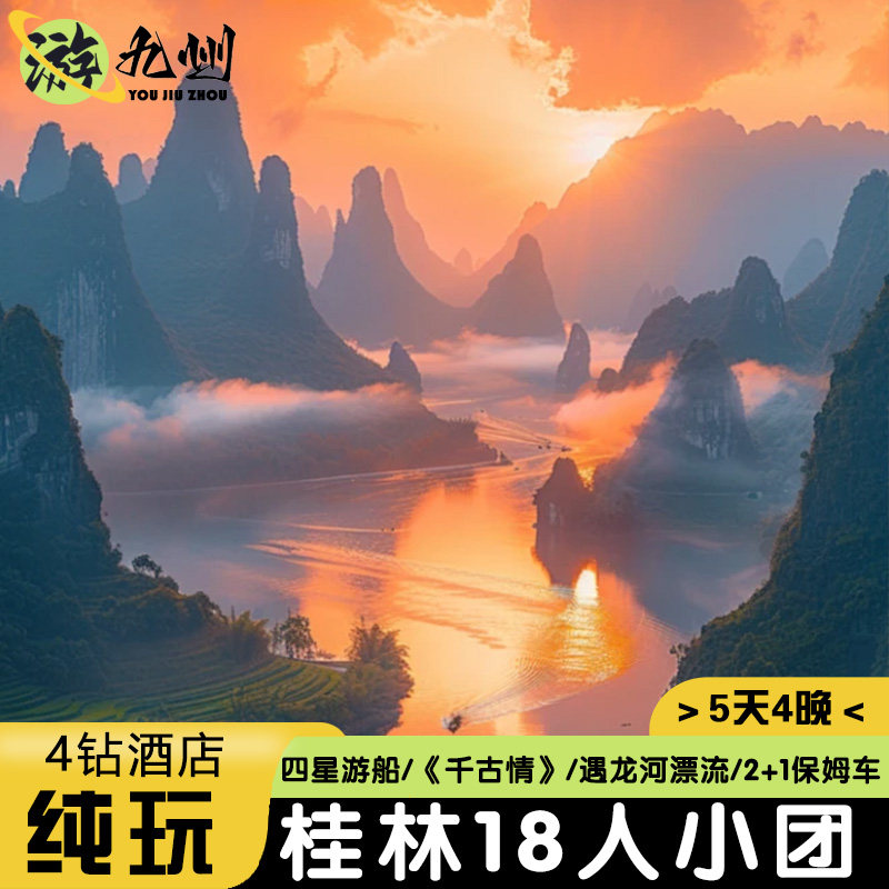 广西桂林旅游5天4晚纯玩阳朔漓江四星船遇龙河竹筏千古情4钻酒店 - 定制游预订