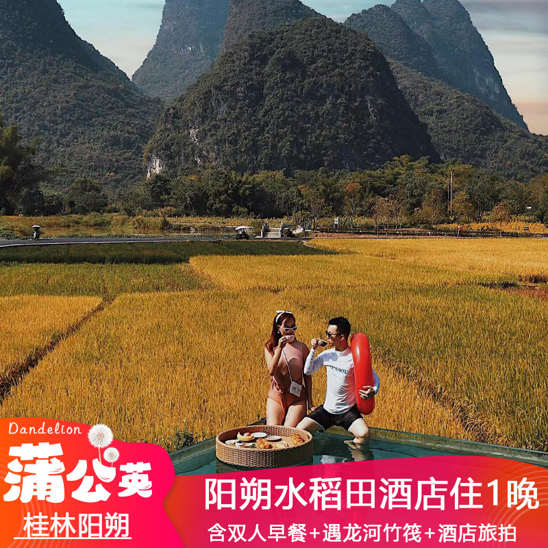 元旦可订】1晚阳朔水稻田酒店+旅拍+西街接送+遇龙河双人竹筏 - 定制游预订