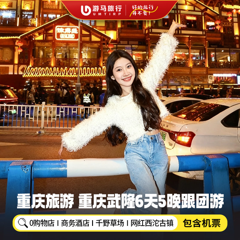 差旅特色本线路专为差旅人士设计,支持从呼和浩特、南宁、兰州、拉萨、银川、西宁、海口等30余座城市出发,含往返机票,省去中转烦恼。无论您是结束区域会议还是项目考察,均可无缝衔接6天5晚的深度重庆之旅。行程涵盖解放碑都市核心区与千野草场、天坑、西沱、濯水古镇等自然人文胜地,兼顾效率与放松,让差旅不再只是奔波,而是身心充电的契机。