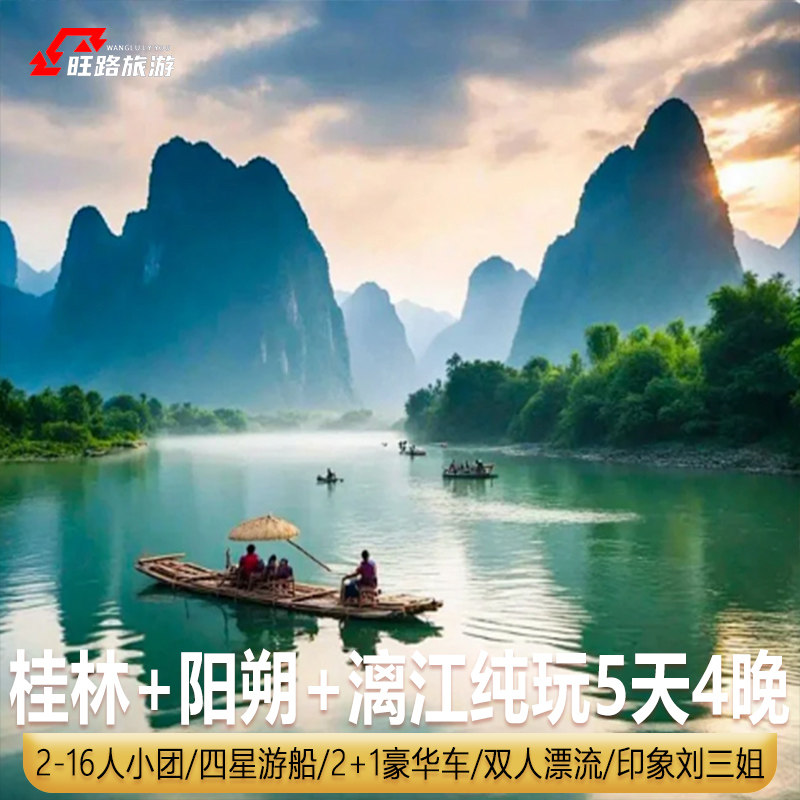 5天纯玩双动/双飞含票|2+1车16人小团|广西桂林阳朔旅游四星游船 - 定制游预订