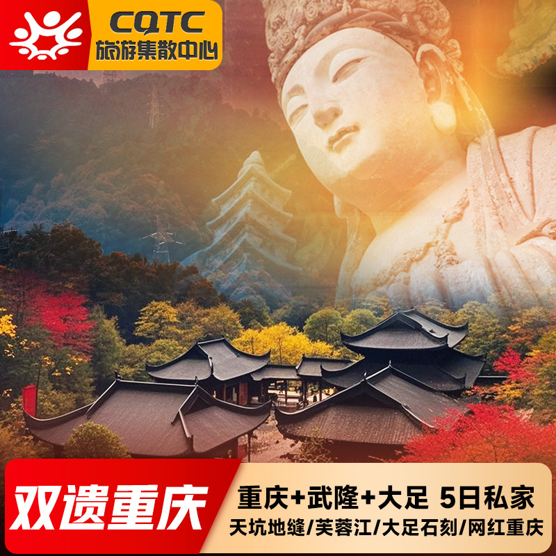 差旅特色本行程专为2人设计的私家团模式,特别适合差旅人士在完成公务后无缝衔接深度度假。无需拼团等待,专属司机与导游全程服务,时间安排高度自由,可依据您的会议或出差节奏灵活调整游览顺序。无论是大足石刻的文化熏陶,还是武隆喀斯特地貌的自然奇观,都能在高效差旅之余沉浸式体验,真正实现“工作+旅行”两不误。