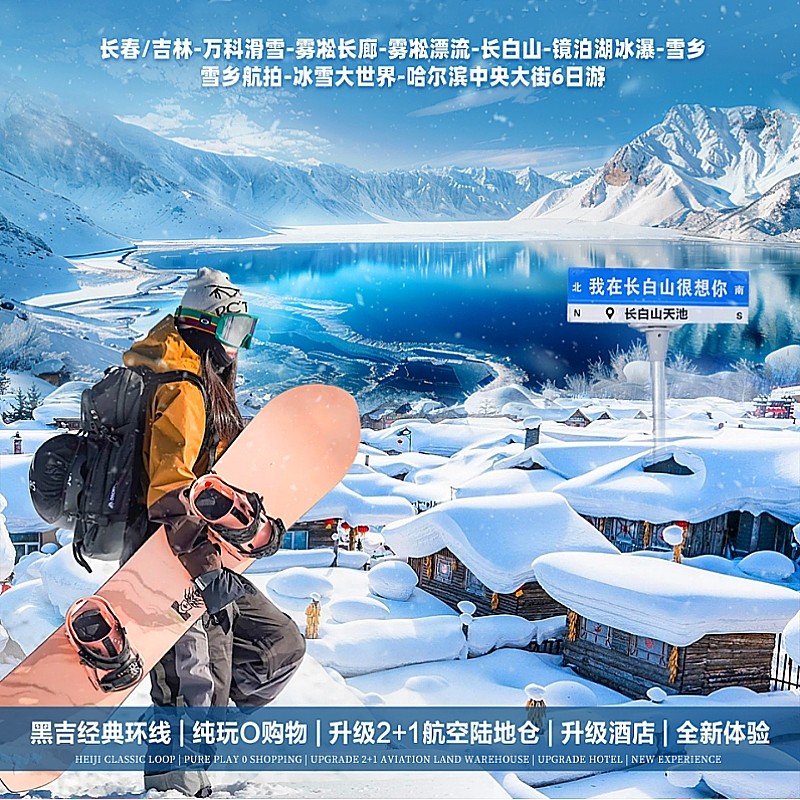 差旅特色本行程专为从沈阳出发的差旅人士量身打造,串联哈尔滨冰雪大世界、吉林万科滑雪场、长白山天池及雪乡等经典目的地,7日深度体验东北冬季魅力。无论您是商务出差后顺道度假,还是利用年假开启冰雪之旅,全程交通衔接顺畅、住宿标准统一,兼顾效率与休闲,让差旅与度假无缝融合。