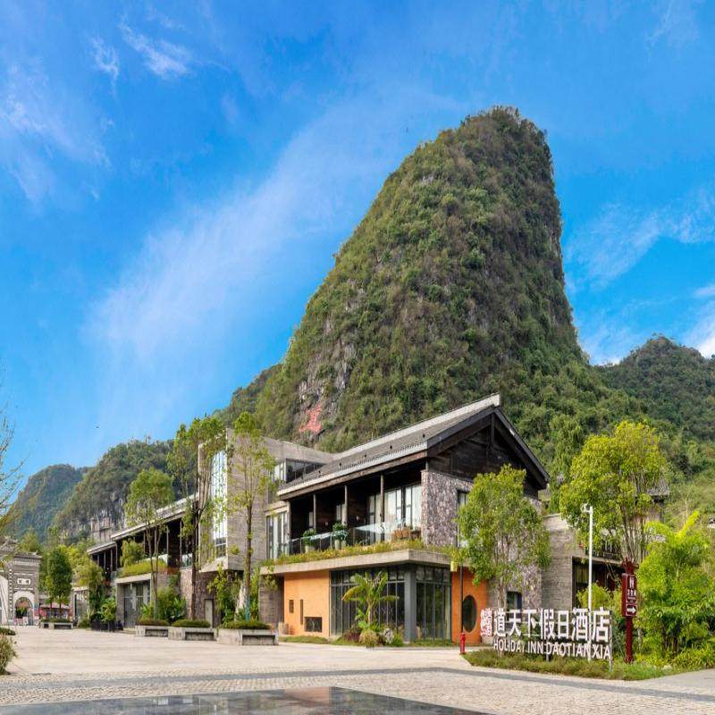 差旅特色专为差旅人士打造的融水老君洞·道天下假日酒店沐日和风大床房,巧妙融合日式美学与喀斯特山水意境。窗棂框景,将山光云影引入室内,白天清风拂面,夜晚静谧安眠。顶层设有潮流设计感的露天无边泳池,工作之余畅游其中,尽享身心放松。酒店距三柳高速融水出口仅七八分钟车程,交通便捷,是商务出行后理想的短暂停留之所。