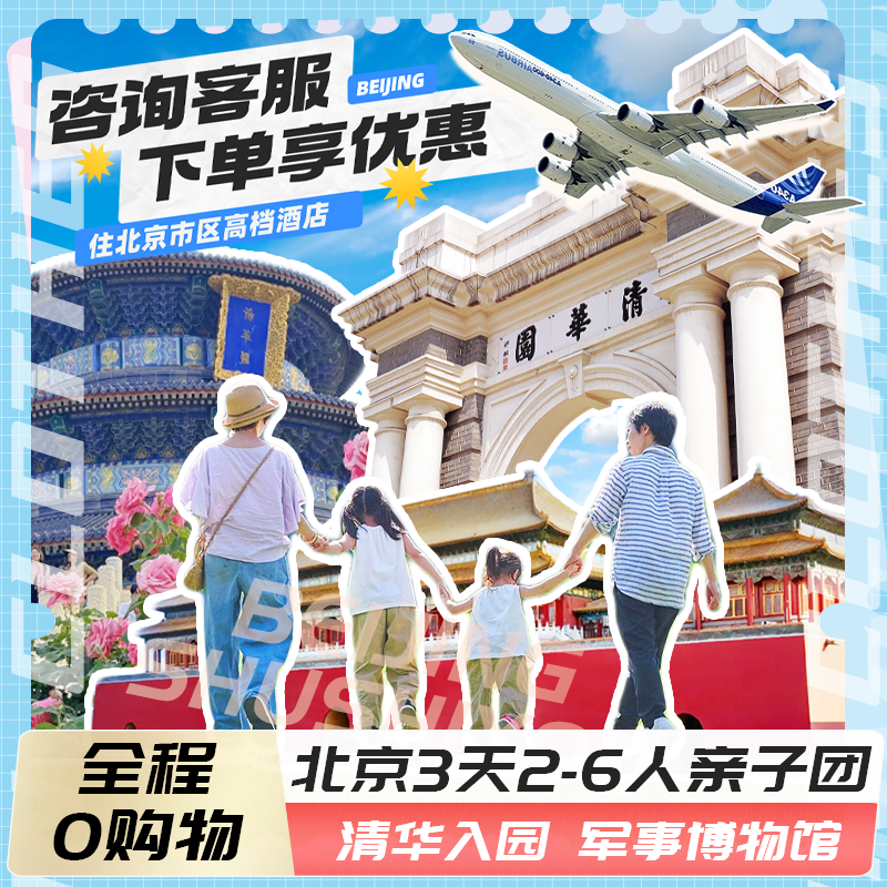 差旅特色本行程专为周末短途差旅家庭设计,仅需3天2晚即可深度体验北京核心文化景点。无论是出差间隙带孩子放松,还是利用周末完成一次高效亲子游,行程安排紧凑而不仓促,涵盖清华、故宫等标志性地点,既满足教育意义又兼顾休闲需求,让差旅不再只是奔波,而是一次高质量的家庭陪伴时光。