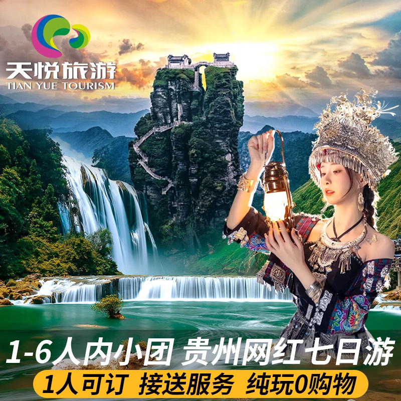 差旅特色本线路支持1人单独预订,无需拼团等待,特别适合商务人士或独自出差后顺道度假的旅客。从贵阳出发,7天6晚行程覆盖黔东南、黔南、铜仁、安顺等贵州精华目的地,兼顾工作与休闲需求。小团模式保障服务品质,行程节奏张弛有度,让差旅中的短暂假期也能轻松享受深度体验,无需协调多人时间,高效又省心。