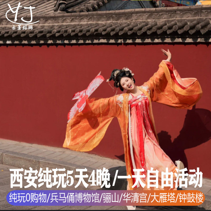 差旅特色专为差旅人士设计的西安5天4晚纯玩行程,支持1人成行,灵活便捷。无论您是从舟山、福州、厦门等东南沿海城市出发,还是从银川、沈阳、石家庄等北方城市启程,均可无缝衔接。行程涵盖兵马俑、华清池、大雁塔、大唐不夜城等核心文化地标,将商务出行与历史人文体验巧妙融合,让短暂差旅也能收获沉浸式文化度假体验。