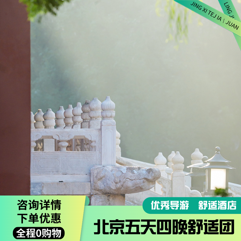 差旅特色专为商务差旅人士设计的北京五天四晚度假产品,支持单人独立成行,无需拼团等待,极大提升出行灵活性。无论您是临时出差顺带休假,还是独自探索京城文化,都能即订即走。全程安排舒适高端住宿,省去繁琐协调,让您在高效工作之余,轻松享受首都的历史韵味与现代魅力。