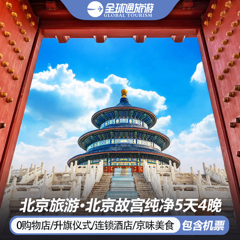 0购物含机票 北京旅游故宫颐和园长城天安门升旗天坛5天4晚跟团游 - 定制游预订