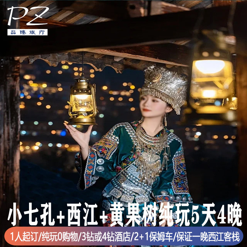 全国出发去到贵州旅游5天4晚纯玩0购物黄果树小七孔西江千户苗寨 - 定制游预订