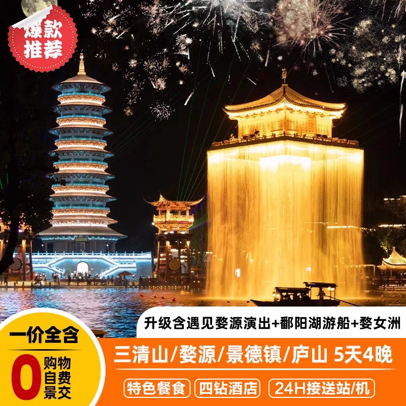 江西旅游庐山瀑布婺源篁岭婺女洲三清山景德镇一价全含5天跟团游 - 定制游预订