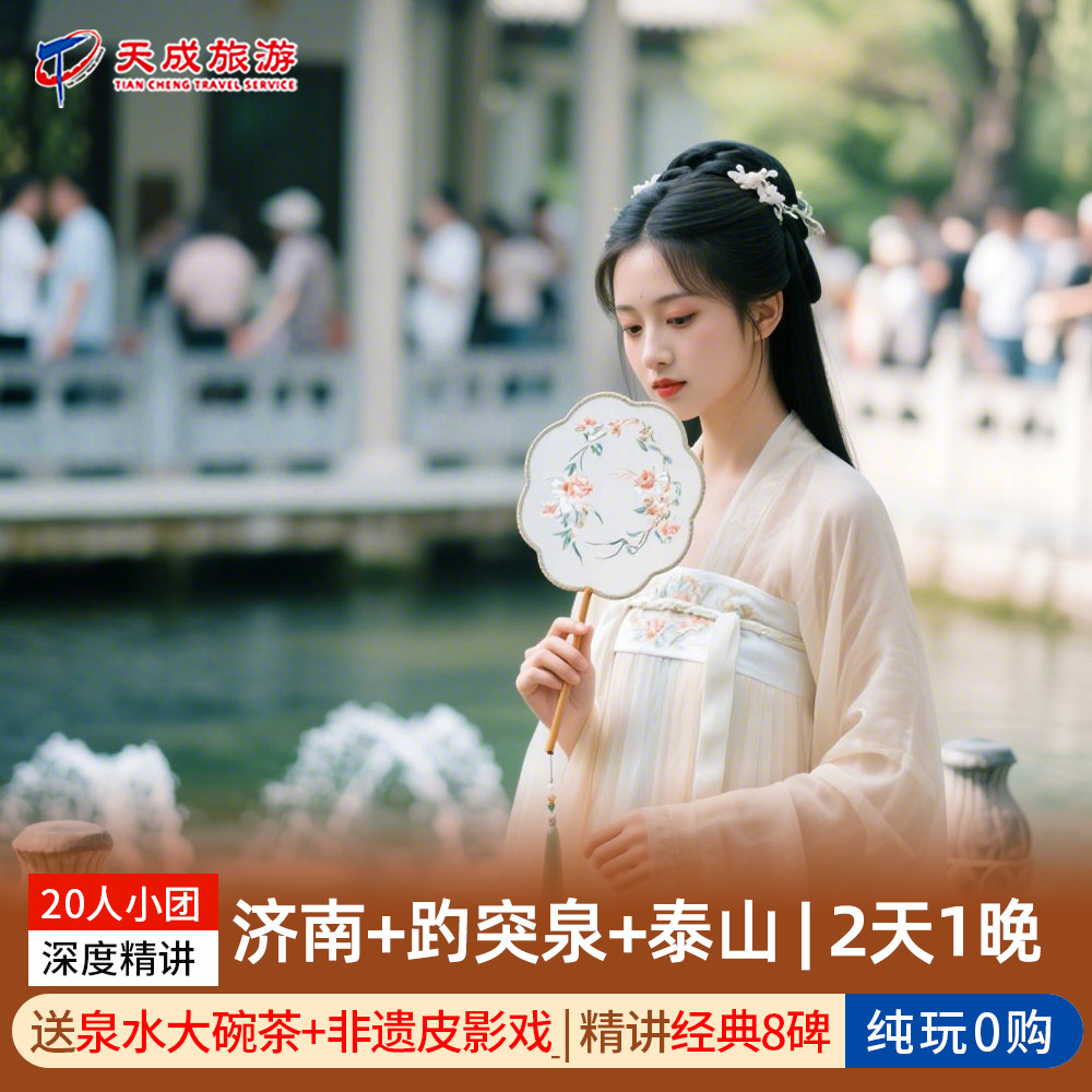 差旅特色本行程专为差旅人士设计,从济南市区出发,无缝衔接泰山登顶祈福与趵突泉、大明湖等核心景点游览。全程交通便捷,时间安排紧凑合理,既满足商务出行后的放松需求,又兼顾文化体验。特别适合出差间隙或周末短途度假的旅客,无需额外规划路线,专业导游全程讲解,让差旅之余也能深度感受齐鲁文化魅力。