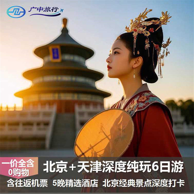 差旅特色本行程专为从南宁出发的差旅及度假人群设计,包含南宁往返北京/天津的机票,免除您自行订票的繁琐。无论是商务出差后的休闲延展,还是纯粹的假期放松,全程交通已为您安排妥当,落地即享专业导游接待,真正实现‘说走就走’的高效旅行体验,让差旅与度假无缝衔接。