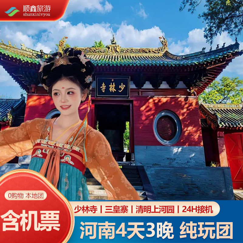 包机票丨河南旅游4天3晚纯玩跟团游少林寺嵩山三皇寨开封府四日游 - 定制游预订