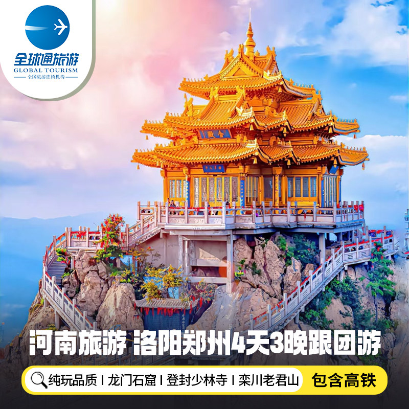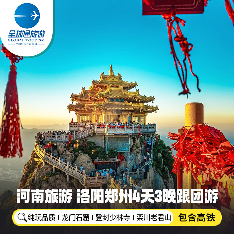 【纯玩含高铁】河南旅游洛阳老君山少林寺龙门石窟4天3晚跟团游 - 定制游预订