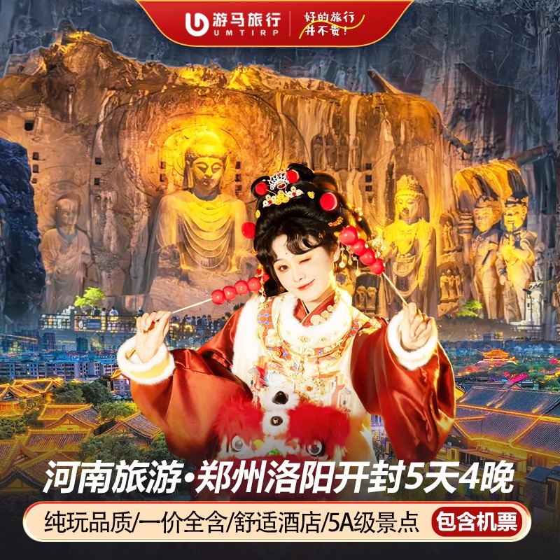 差旅特色本行程专为商务差旅人士设计,从郑州便捷出发,高效串联开封、洛阳等省内核心城市,无需辗转奔波。5天4晚紧凑安排,既满足工作间隙的放松需求,又深度体验中原文化精髓。无论是清明上河园的宋代市井风情,还是龙门石窟的千年佛韵,皆可在高效交通接驳下轻松抵达,让差旅与度假无缝融合,提升出行价值感。