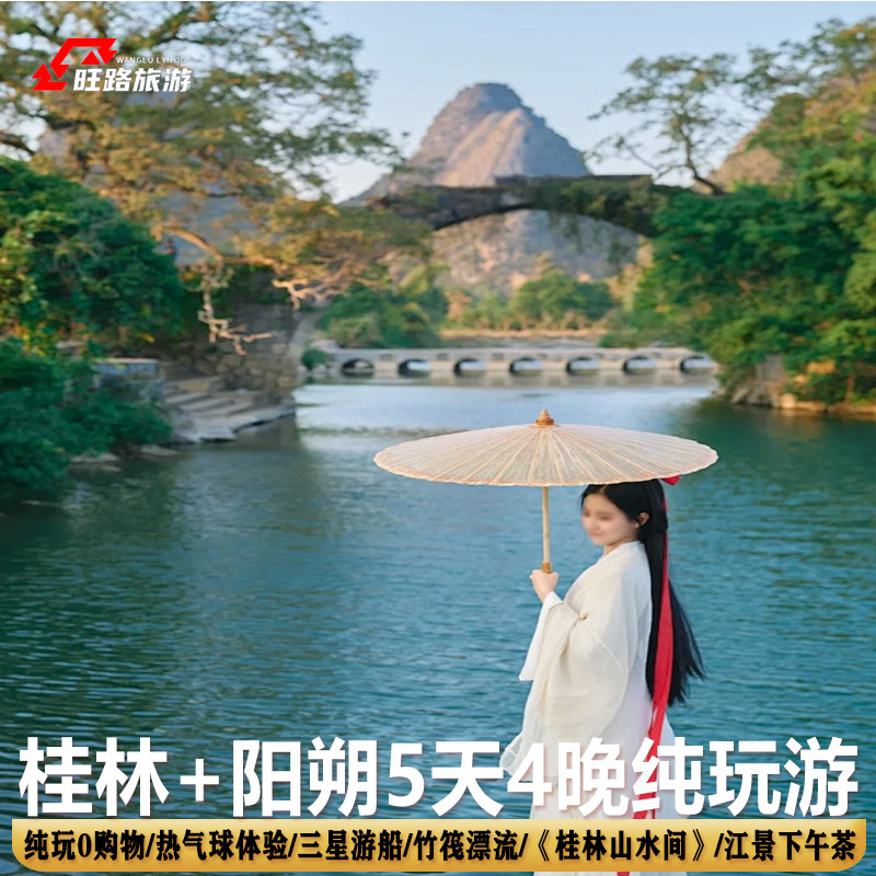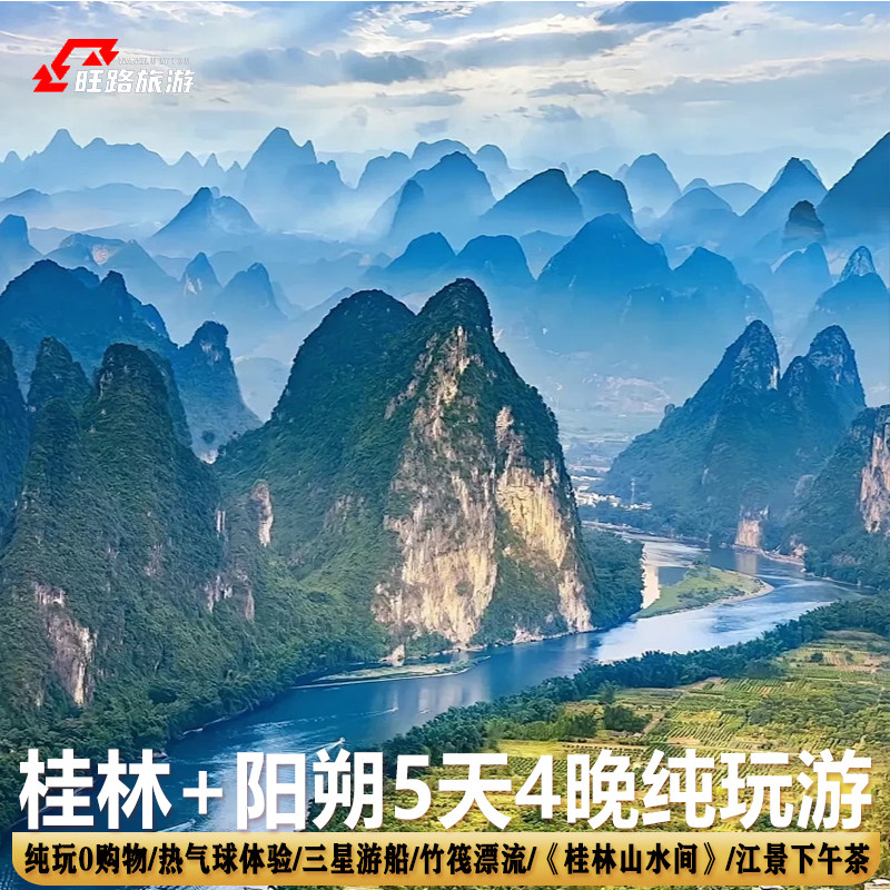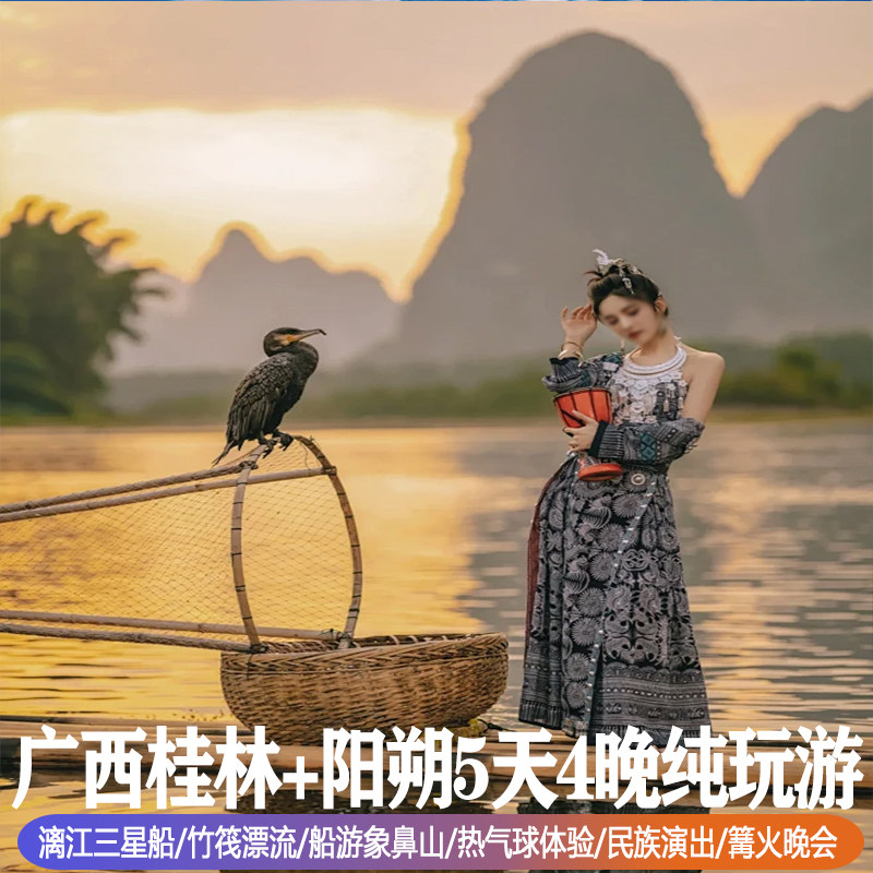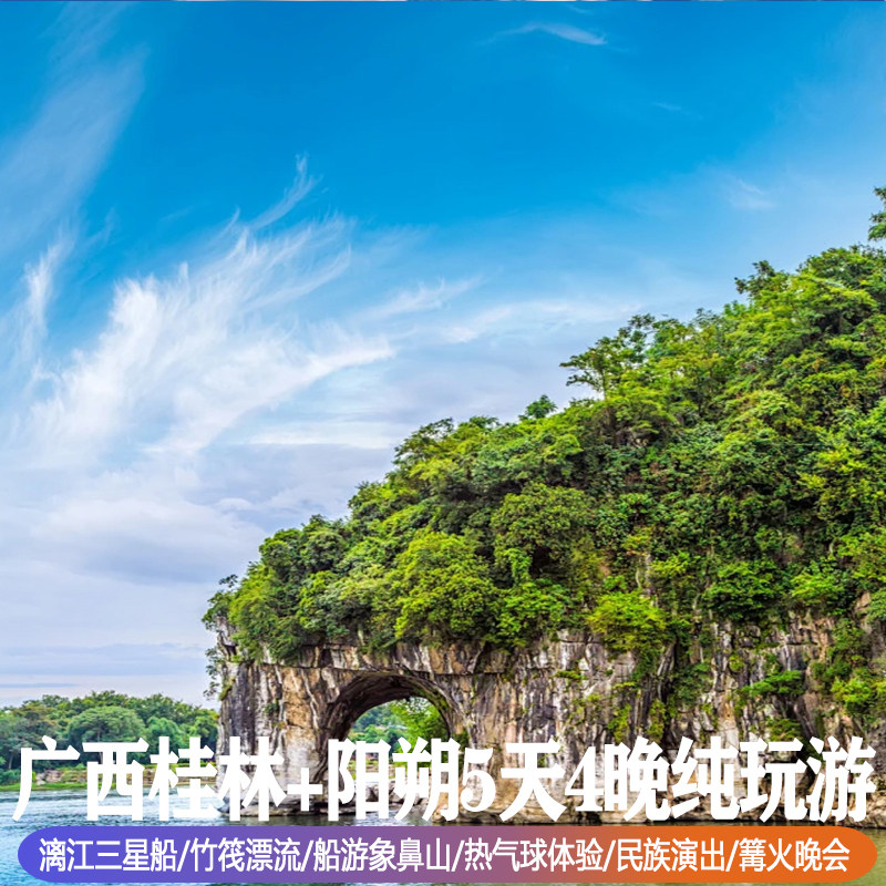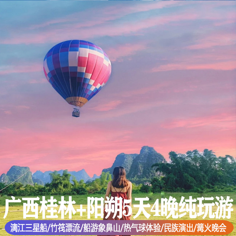 纯玩无购物 | 广西桂林阳朔旅游5天漓江三星船竹筏漂流热气球体验 - 定制游预订