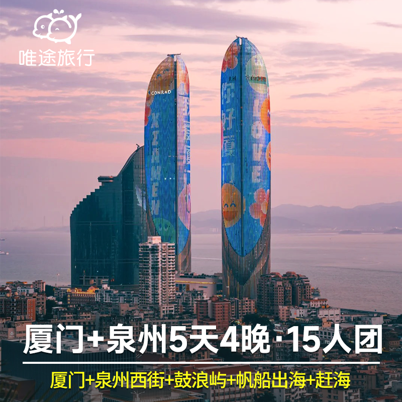 差旅特色本行程支持单人预订,无需拼团等待,特别适合商务差旅人士在工作之余灵活安排休闲时光。无论是临时出差顺道度假,还是独自探索闽南文化,都能即订即走,省去协调多人时间的烦恼。5天4晚的行程节奏张弛有度,兼顾效率与放松,让您在繁忙差旅中也能享受高品质的度假体验。