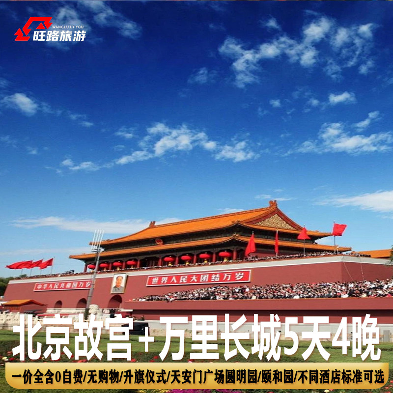 无强制消费|北京旅游全景5天故宫升旗仪式圆明园万里长城送接送机 - 定制游预订