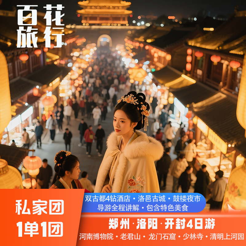 差旅特色本行程专为兼顾差旅与休闲的旅客设计,从郑州便捷出发,4天3晚高效串联洛阳老君山、龙门石窟、少林寺及开封清明上河园四大核心景点。行程节奏张弛有度,既满足商务人士对时间效率的需求,又融入深度文化体验,让差旅不再枯燥。全程私家团配置,灵活调整出发时间,特别适合临时出差后顺道度假的双人出行需求。