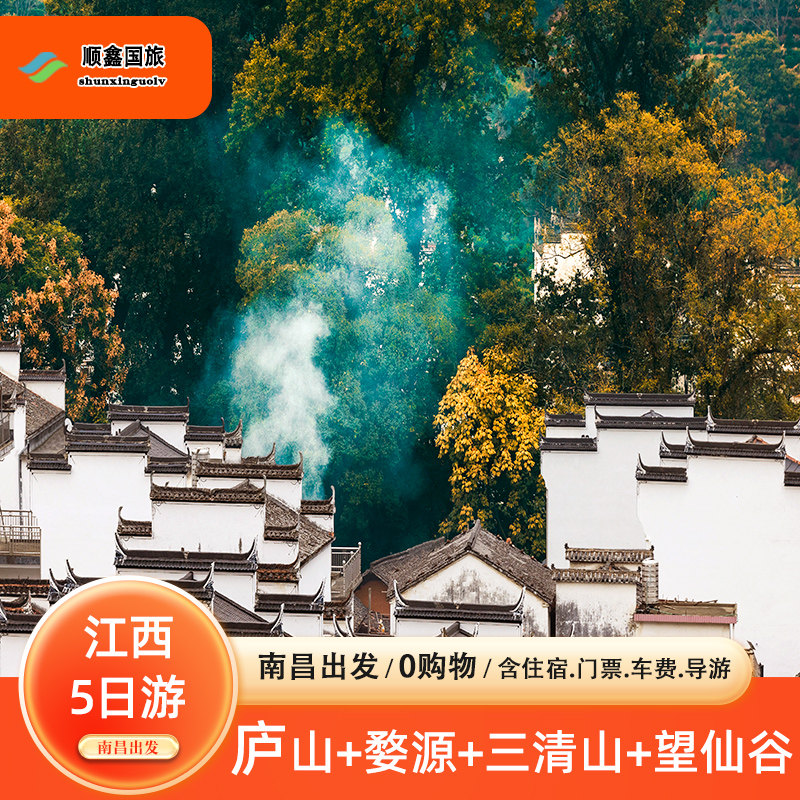 差旅特色本线路专为商务人士及独自出行旅客设计,支持1人报名即成团,无需拼团等待,极大提升差旅灵活性。从南昌便捷出发,5天4晚高效串联庐山、景德镇、婺源、三清山与望仙谷五大核心景区,行程紧凑却不仓促,兼顾工作间隙的放松与深度文化体验,是出差之余顺道度假的理想选择。