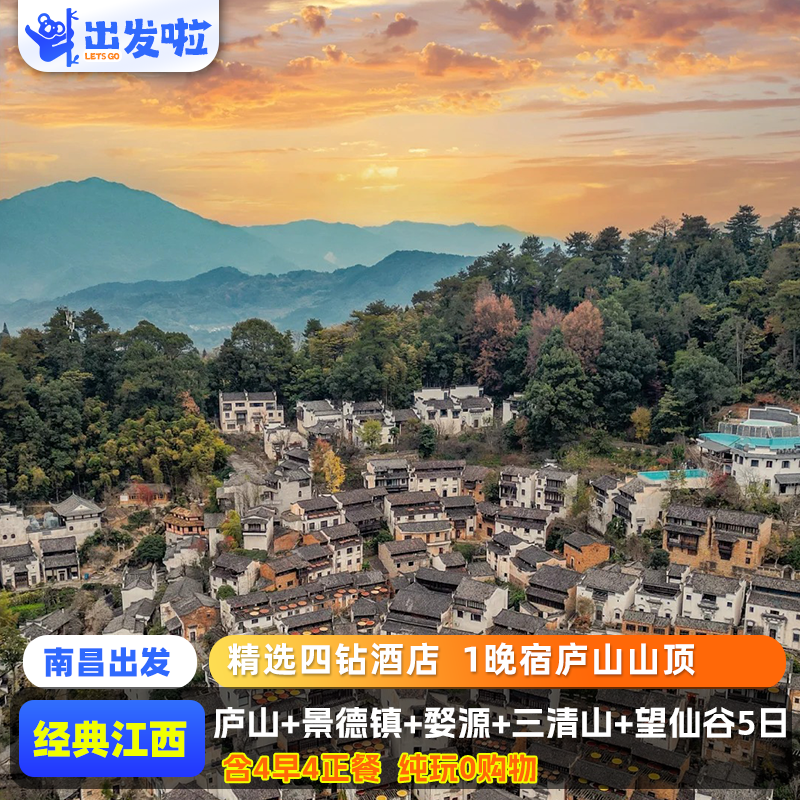 差旅特色本线路专为差旅人士设计,从南昌便捷出发,5日内高效覆盖庐山、景德镇、望仙谷、三清山与篁岭五大经典目的地。行程节奏合理,兼顾商务出行的效率与度假休闲的深度体验,避免冗长交通耗时,最大化利用有限假期。全程跟团省心省力,无需自行规划路线与票务,特别适合出差间隙或短假出行的职场人士,实现工作与旅行的无缝衔接。