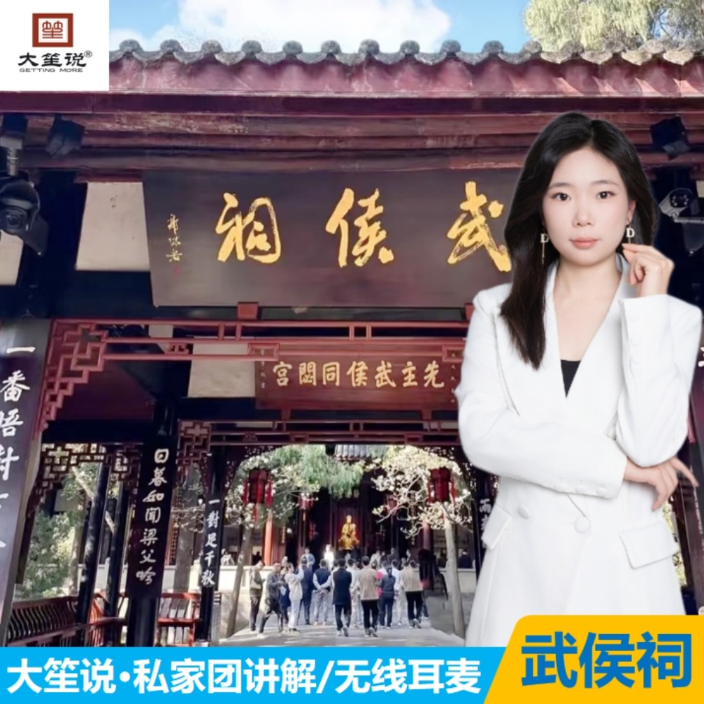 差旅特色专为差旅人士设计的成都武侯祠金牌人工讲解服务,仅需2小时即可沉浸式了解三国文化精髓。行程紧凑、内容精炼,适合在会议间隙或抵达当日快速体验本地人文历史。1对1私享团形式确保讲解节奏贴合个人需求,时间灵活任选,无需拼团等待,最大化利用有限差旅时间,兼顾效率与文化体验。