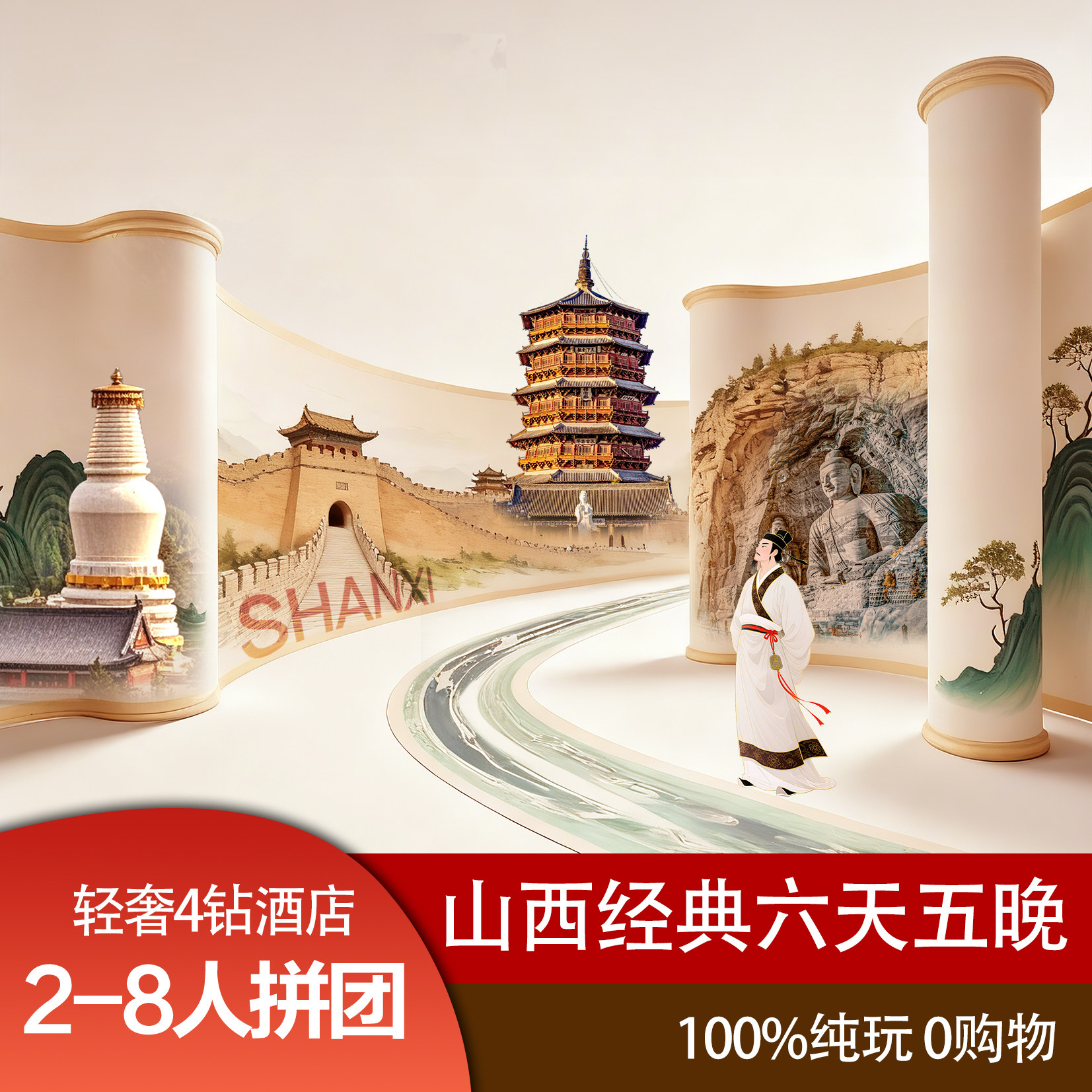 差旅特色本线路专为差旅人士设计,从太原出发,支持1人即可成行的精致小团模式,极大提升行程灵活性。无论是临时出差后顺道度假,还是利用周末短假深度游山西,都能无缝衔接。全程采用4钻轻奢住宿与商务车接送,兼顾舒适性与效率,让差旅不再疲惫,反成文化休憩之旅。