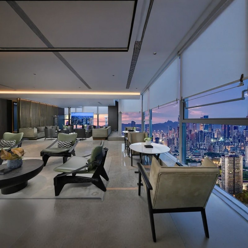差旅特色入住LIZ GRAND ONE观音桥1号行政酒店,您将下榻于重庆核心商圈——观音桥,坐拥66层高空180°环幕视野。无论是白天俯瞰山城全景,还是夜晚沉浸于璀璨灯火之中,皆能为您的差旅增添一份从容与格调。酒店融合法式奢雅设计与现代智能设施,是商务出行与短途度假的理想之选,让高效工作与惬意休憩无缝切换。